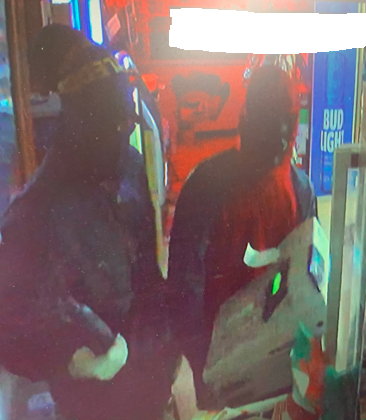 Surveillance video revealed two individuals wearing camouflage pants, hats, and gloves broke into the business and removed the register.