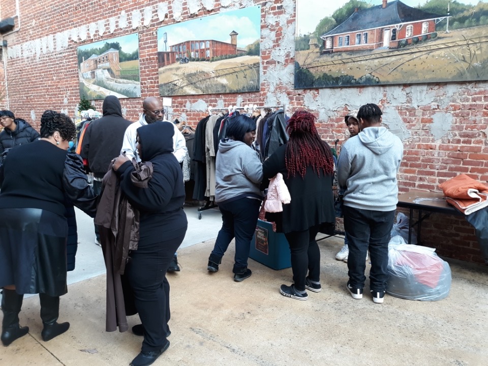 The coats were distributed Saturday at the green space at 1026 Roanoke Avenue with assistance from Citizens on Patrol.