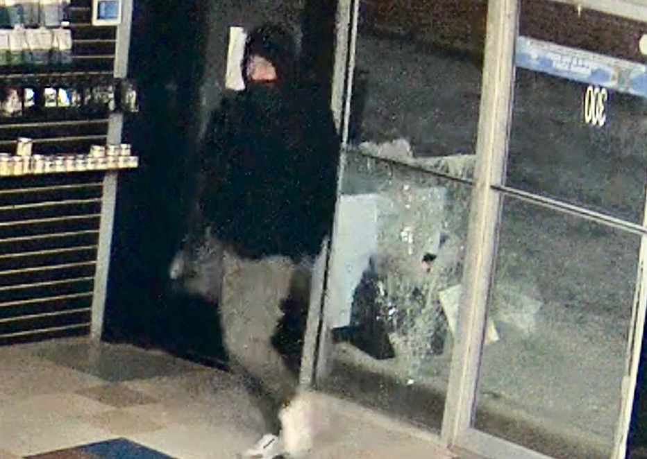 An individual pictured broke glass to gain entry and took items.