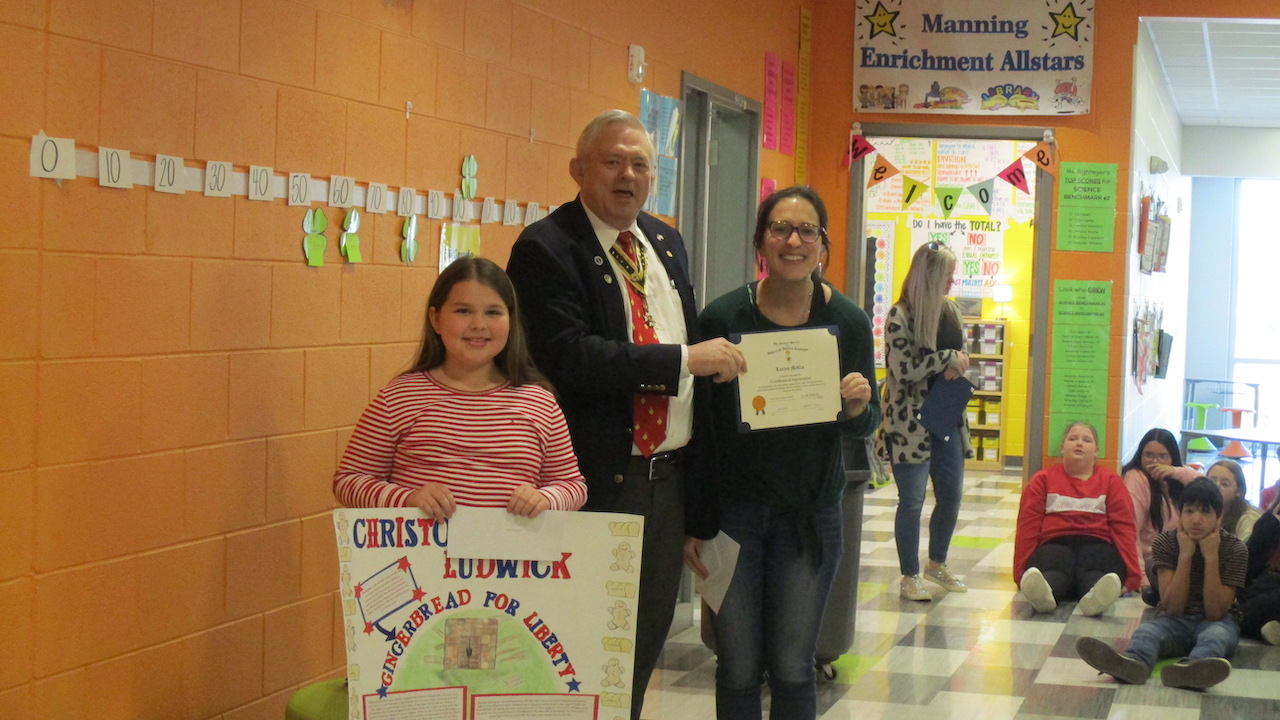 Linley Godsey, an eighth-grader at Chaloner Middle School, won the brochure contest by defending the Declaration of Independence.