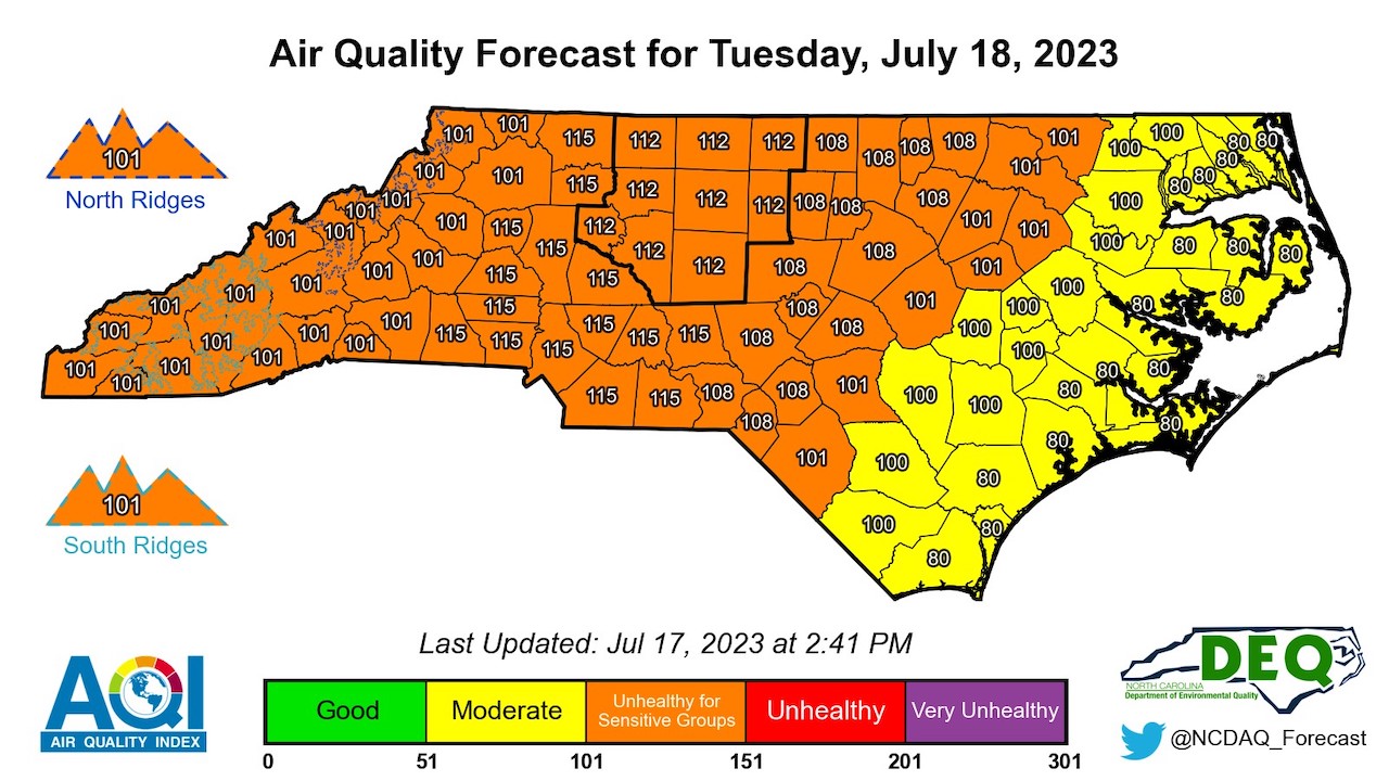 Another round of smoke coming from Canadian wildfires has prompted the North Carolina’s Division of Air Quality to issue another code orange air quality action day for Tuesday.