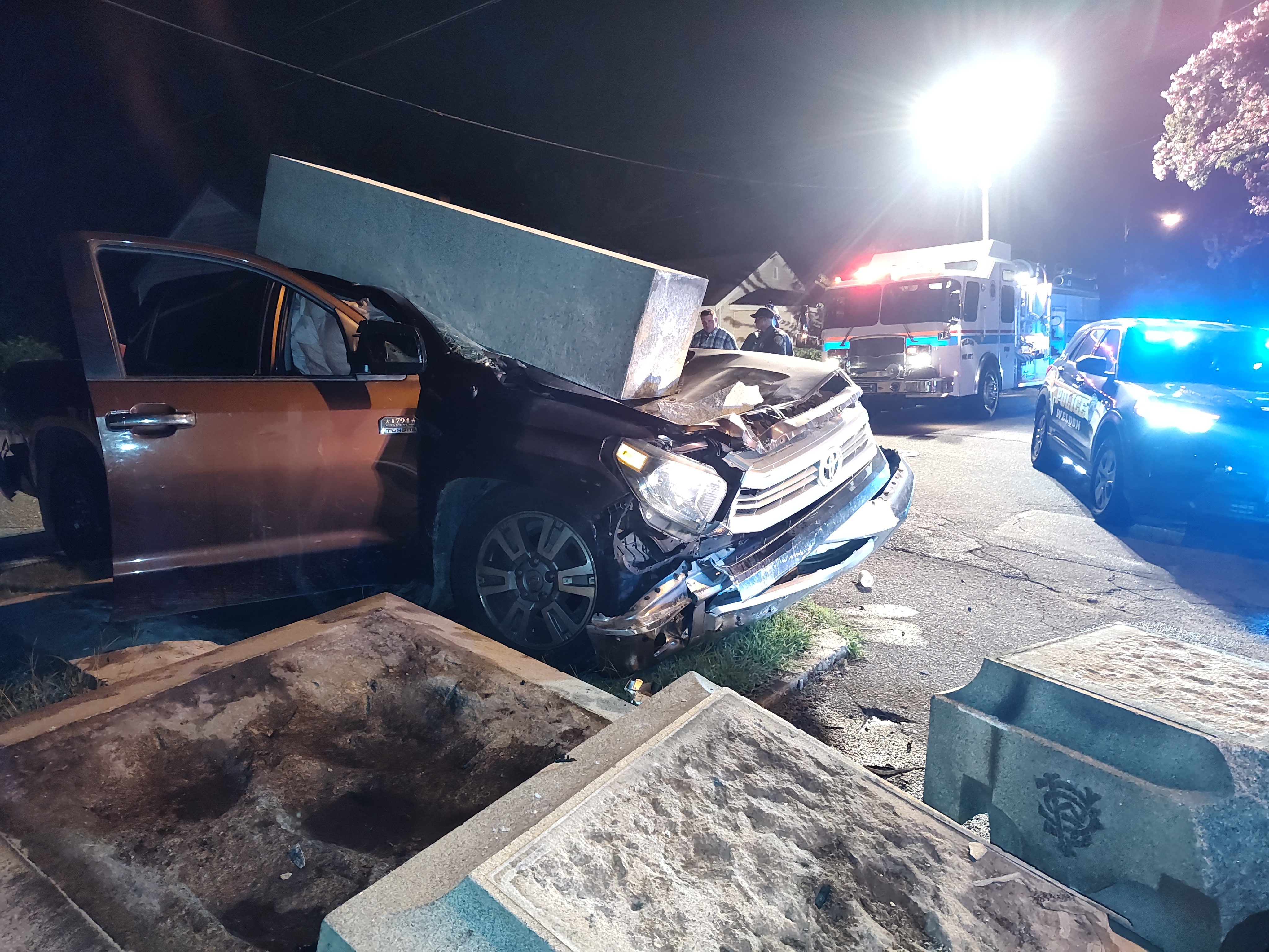A Toyota Tundra had struck the monument which is located near the entrance of Cedarwood Cemetery.