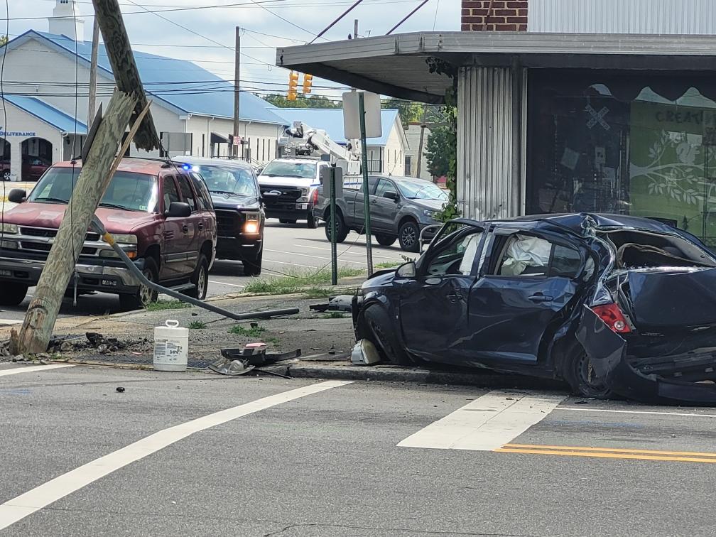 A man with Weldon and Burlington addresses crashed into a utility pole and caused minor damage to a building this morning after fleeing from an officer while traveling the wrong way on a one-way street.