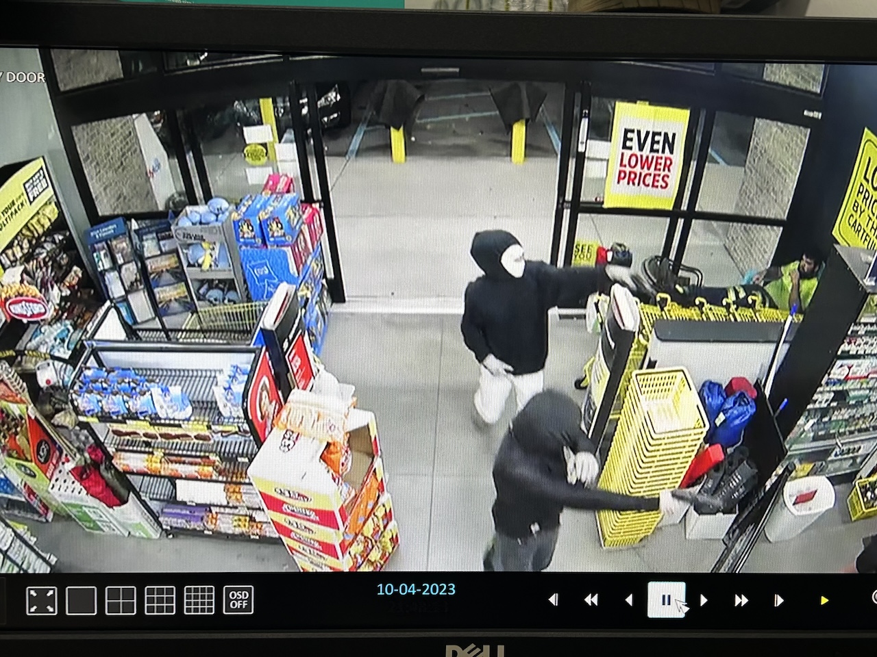 The suspects left with an undisclosed amount of money along with cigarettes.