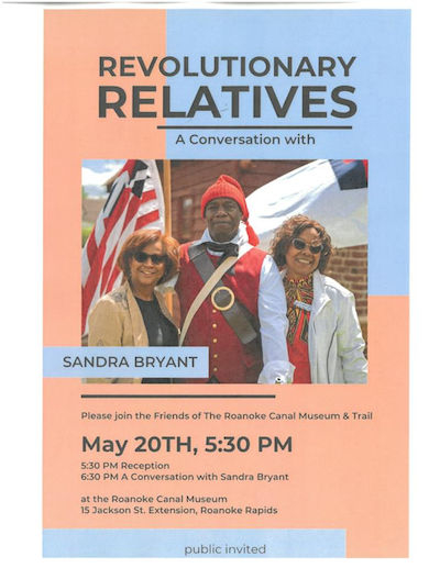 Sandra Bryant will discuss her research into her family’s ties to the American Revolution during a program at the Roanoke Canal Museum this evening.