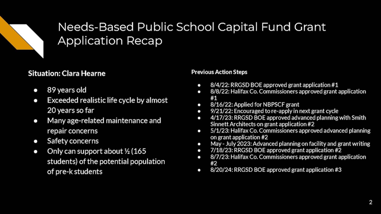 The Roanoke Rapids Graded School district will try a third time for a Needs-Based Public School Capital Fund Grant for a pre-kindergarten center on the campus of Manning Elementary School.