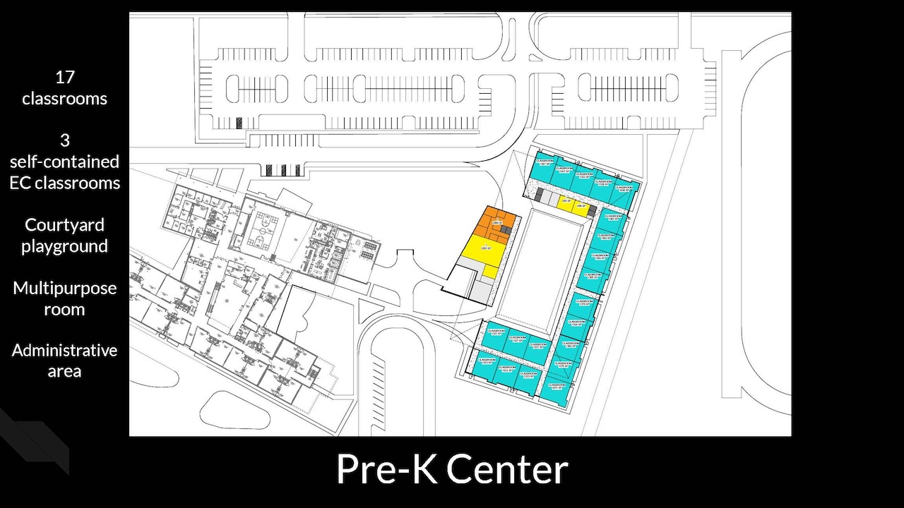 With 17 classrooms, the center would also have three self-contained classrooms for exceptional children.