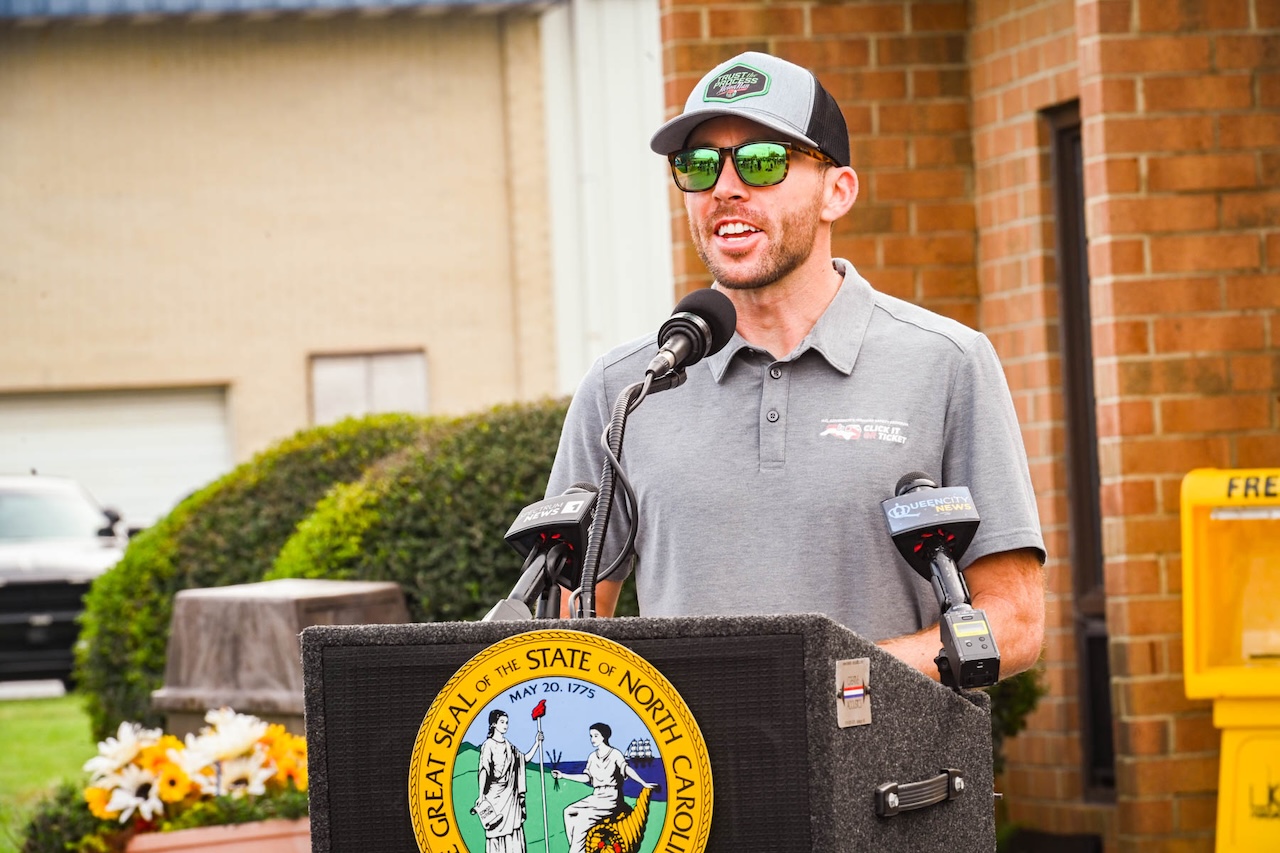 GHSP partnered with the Mooresville Police Department, NASCAR driver Ross Chastain and others this week at the North Carolina Auto Racing Hall of Fame to launch the statewide Click It or Ticket enforcement campaign.