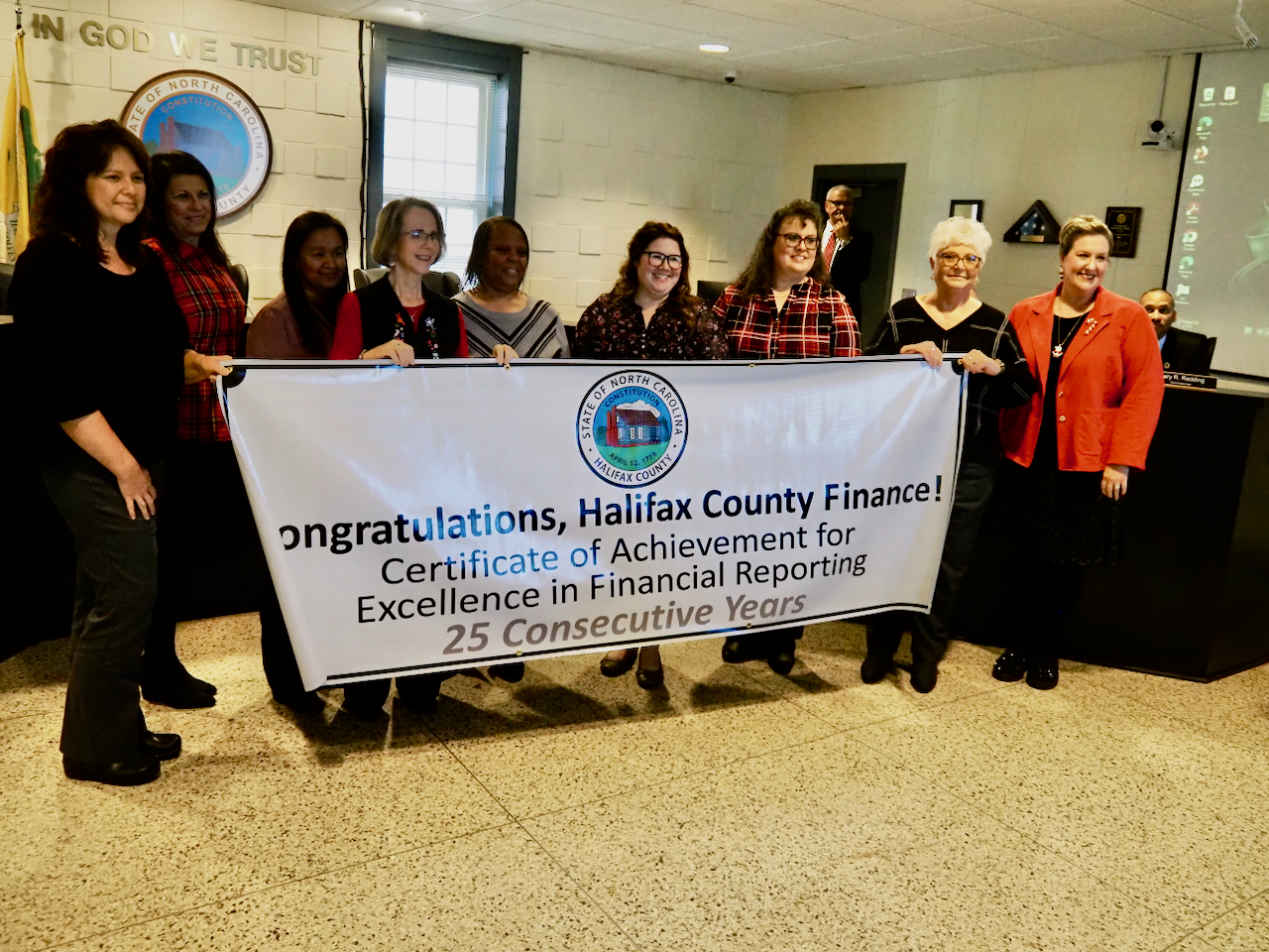 For the 25th straight year, the Halifax County Finance Department received the Certificate of Achievement for Excellence in Financial Reporting from the Government Finance Officers Association of the United States and Canada.