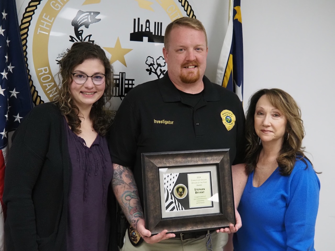 The Roanoke Rapids Police Department officer of the year award is now named in honor of the late Charles Vaught and the officer who received it today — Stephan Bryant — is a person who exemplified Vaught’s traits, former Chief Shane Guyant said at a ceremony at city hall.
