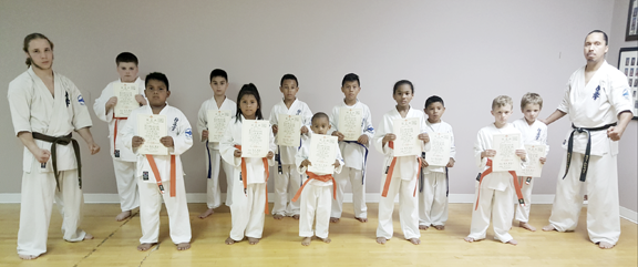 Several area students in Kenny Buffaloe's Kyokushin Karate adult, teen, & youth classes at the ROCK in Roanoke Rapids were recently promoted in rank.